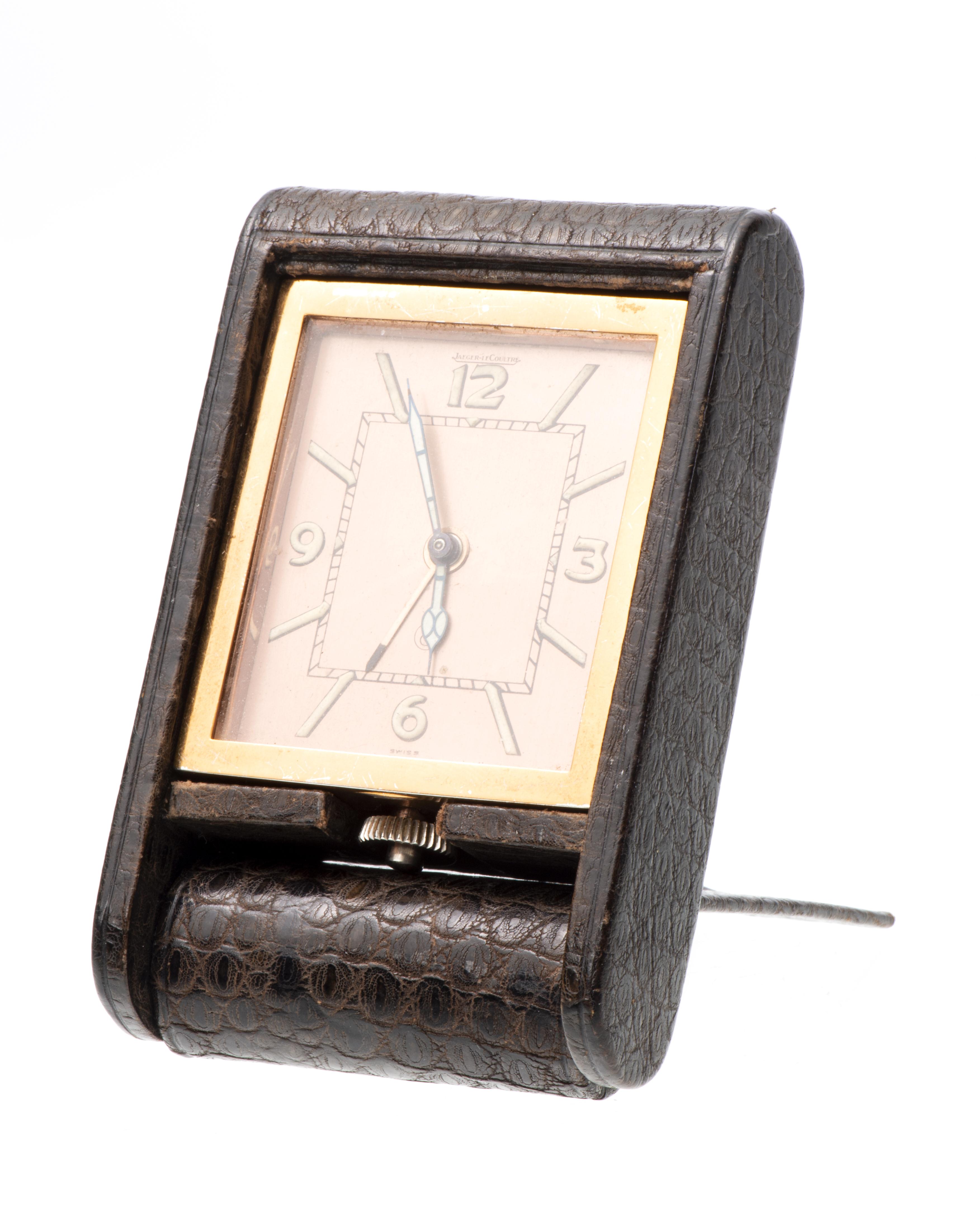 JAEGER LECOULTRE, montre de table dans son étui en croco brun.