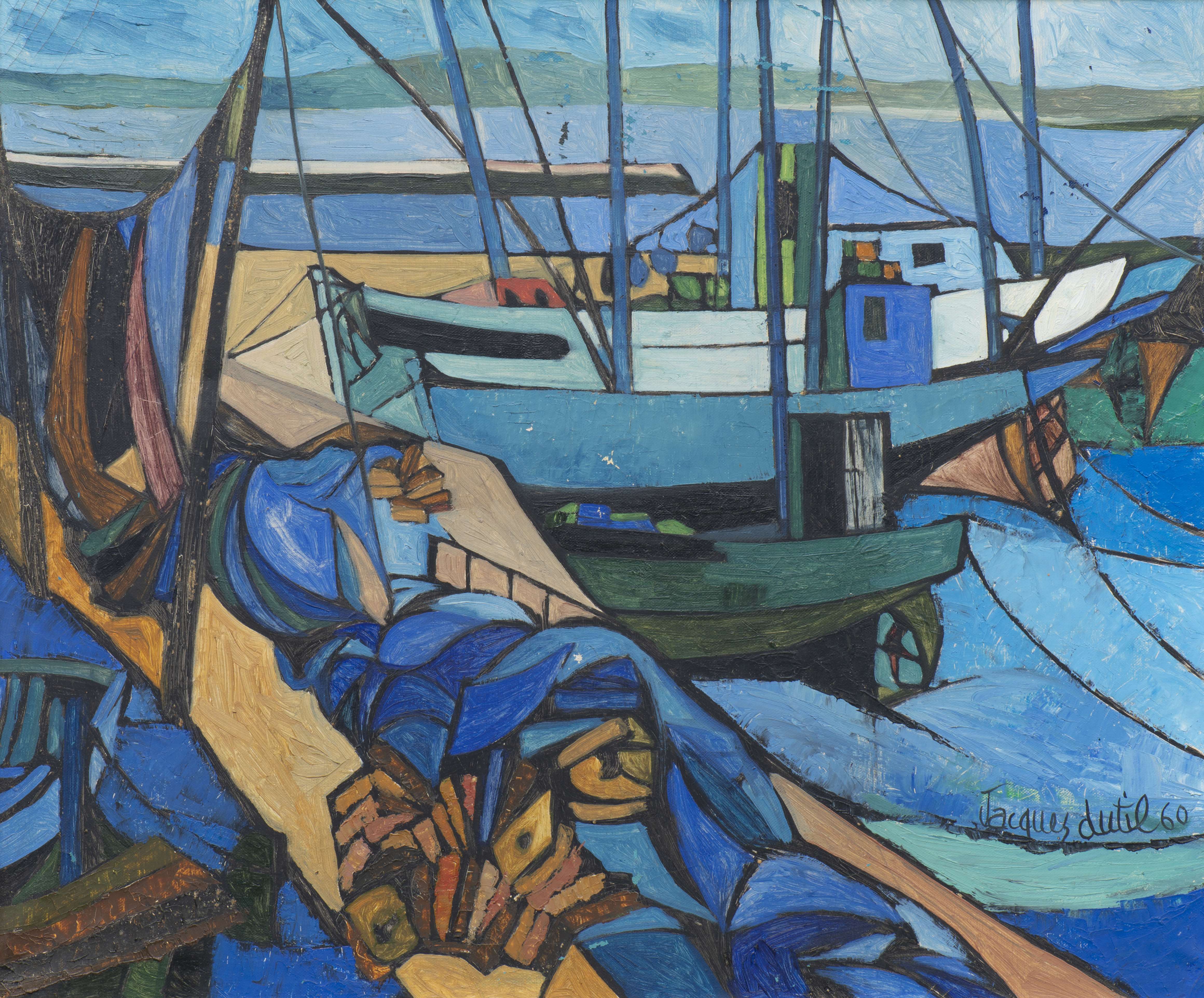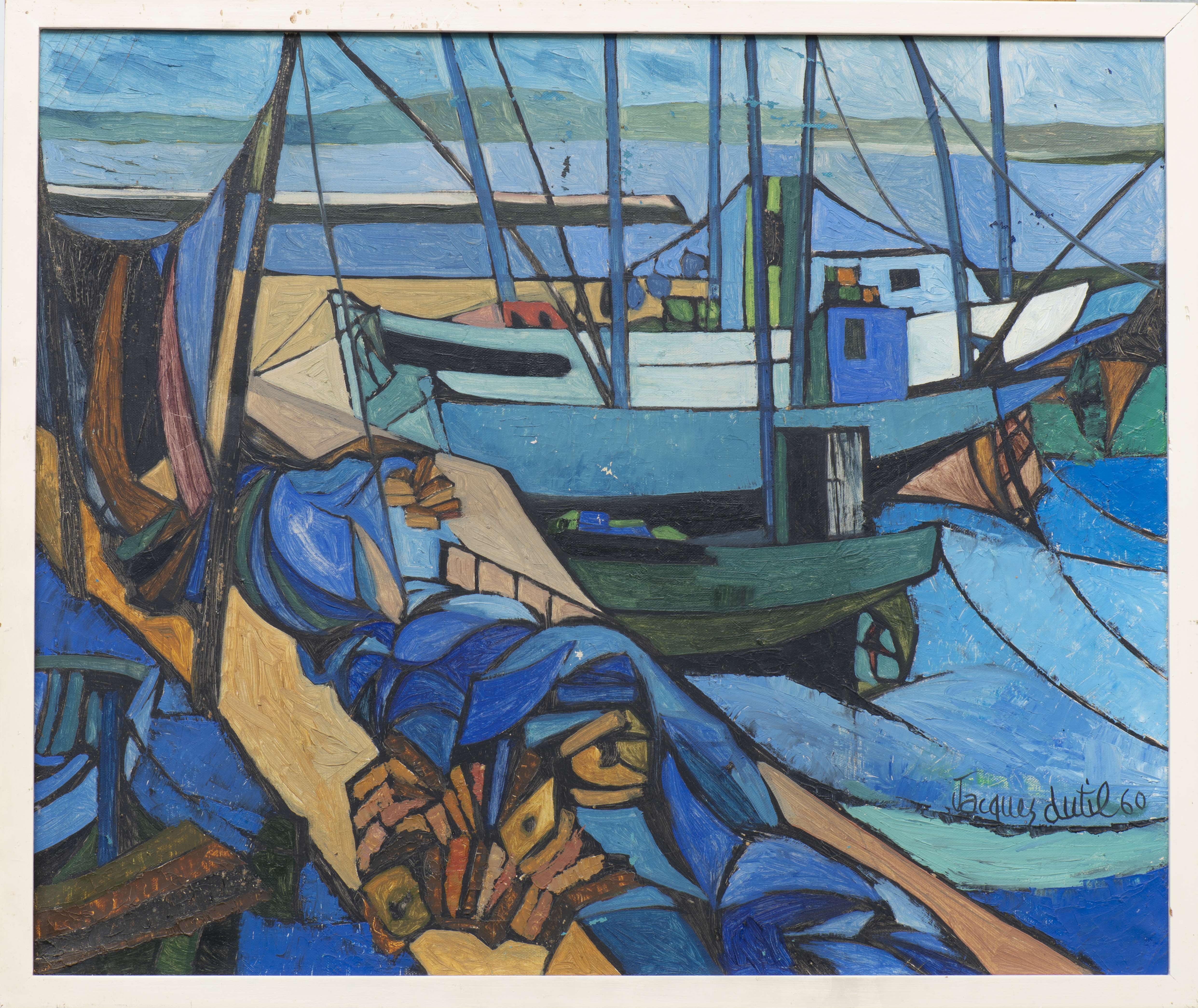 Jacques DUTIL (XX), "Chantier naval", huile sur toile, signé et daté 1960 en bas à droite.