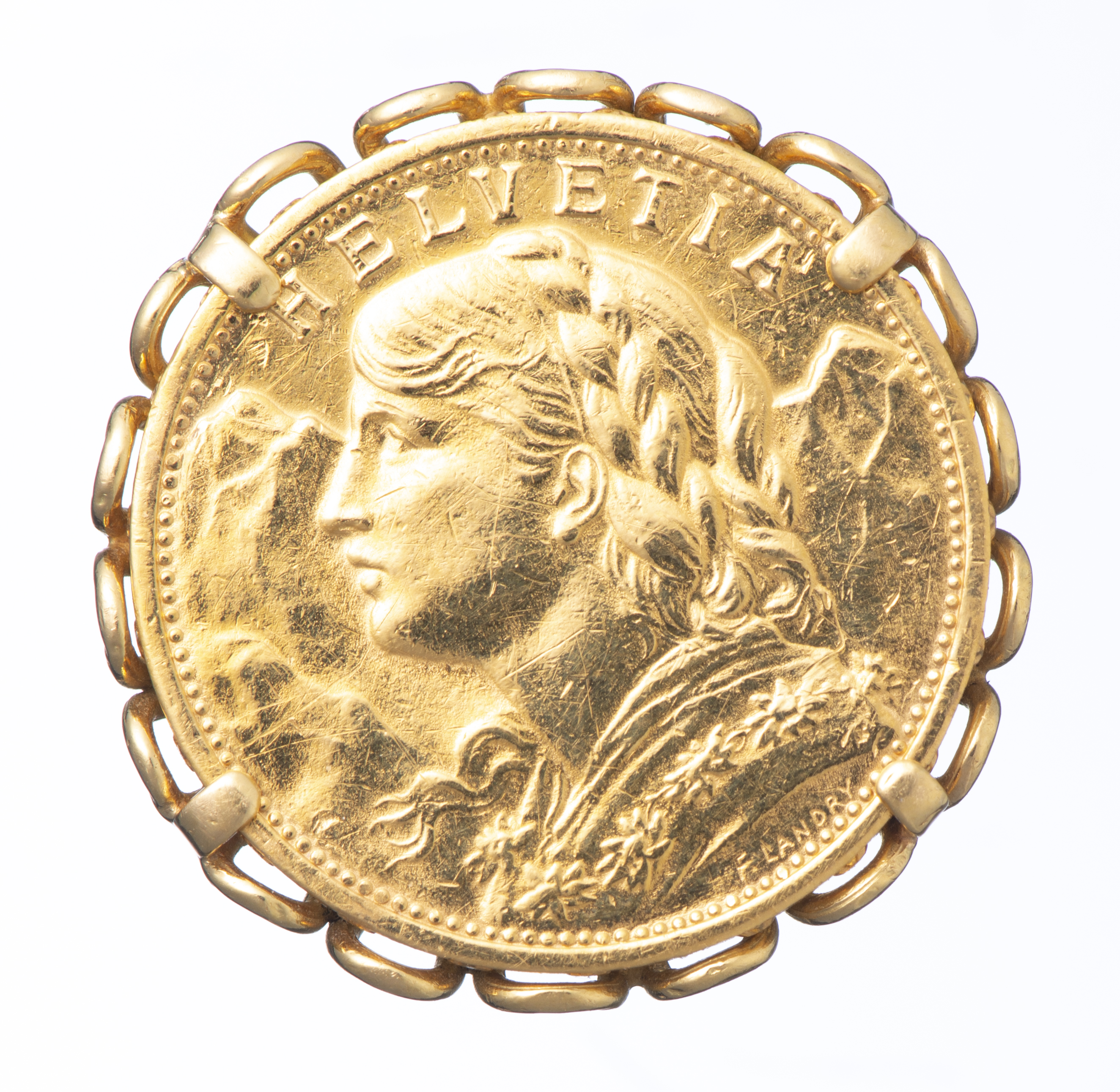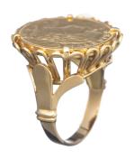 Bague en or jaune ornée d'une pièce d'or Helvetia 20 francs suisses