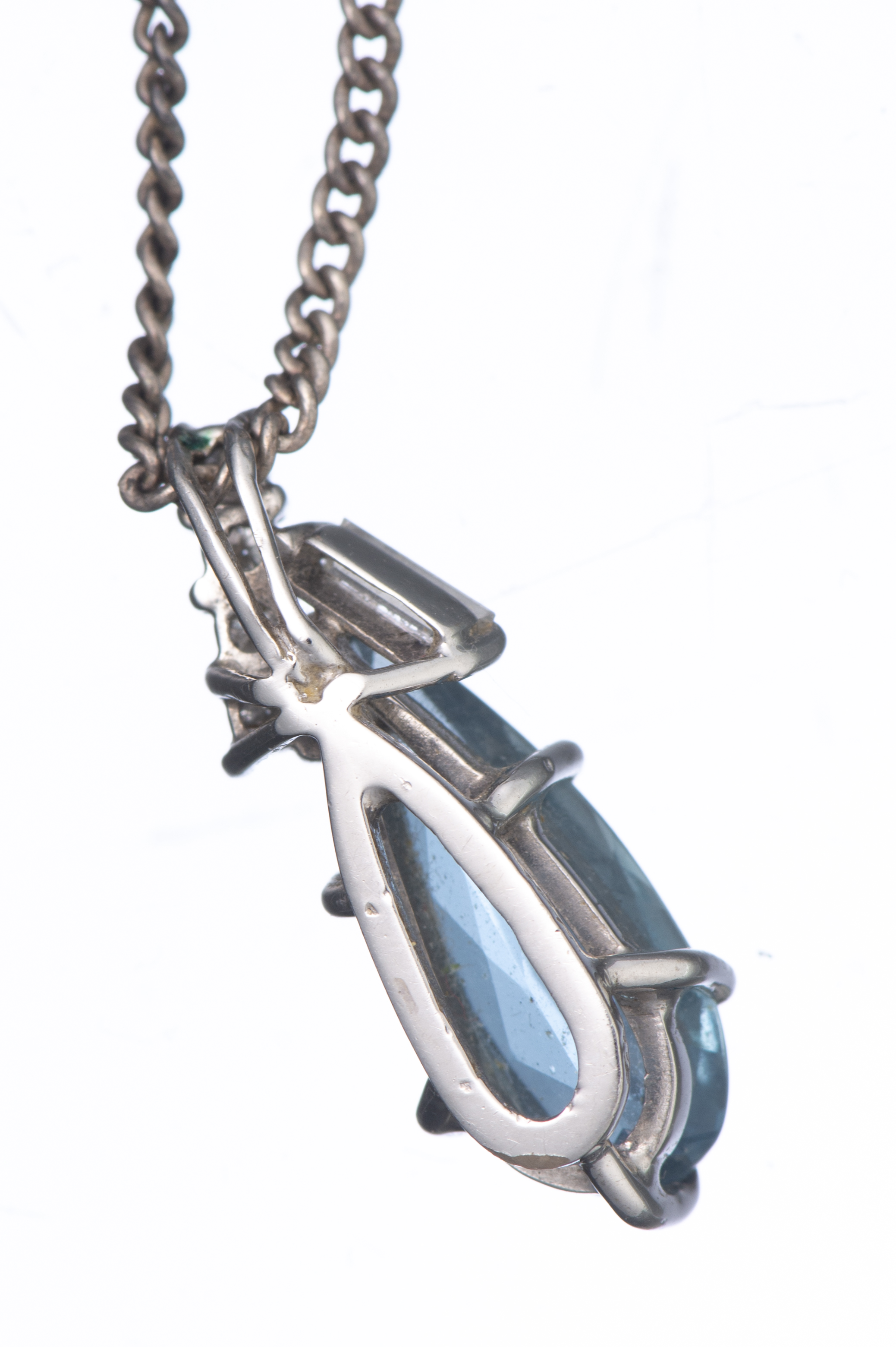 Collier composé d'une chaîne en argent retenant un pendentif en or blanc serti d'une aigue-marine et de diamants