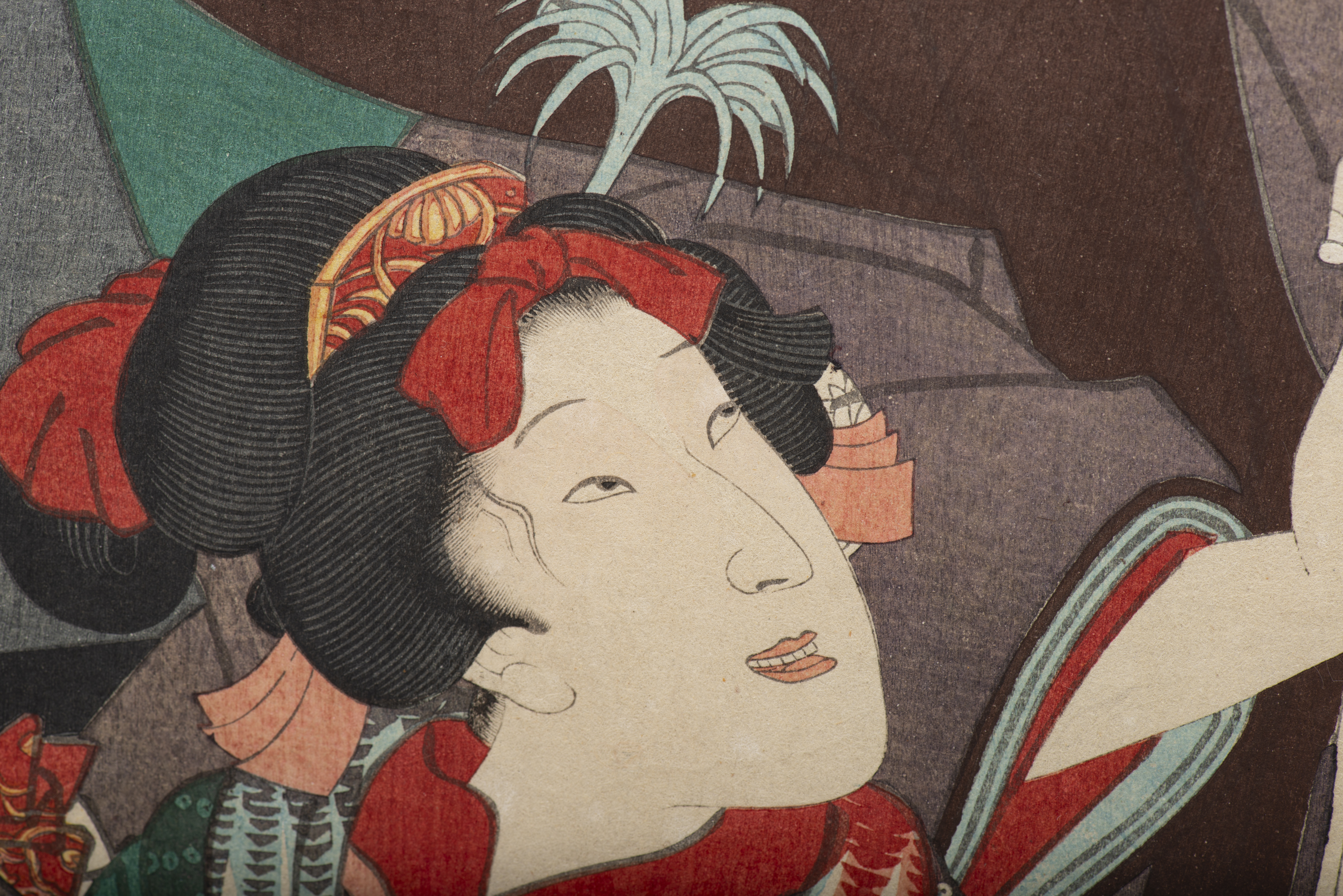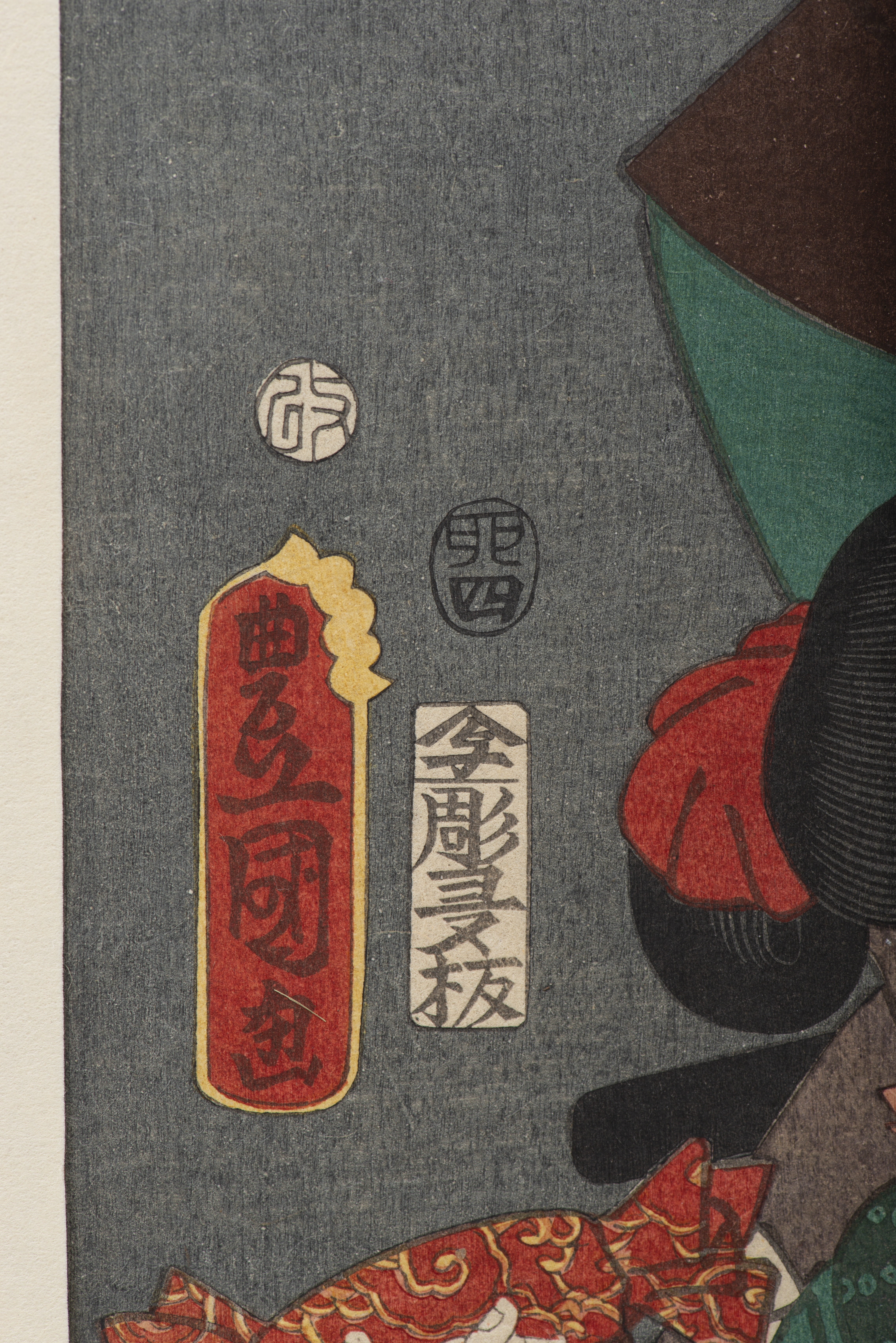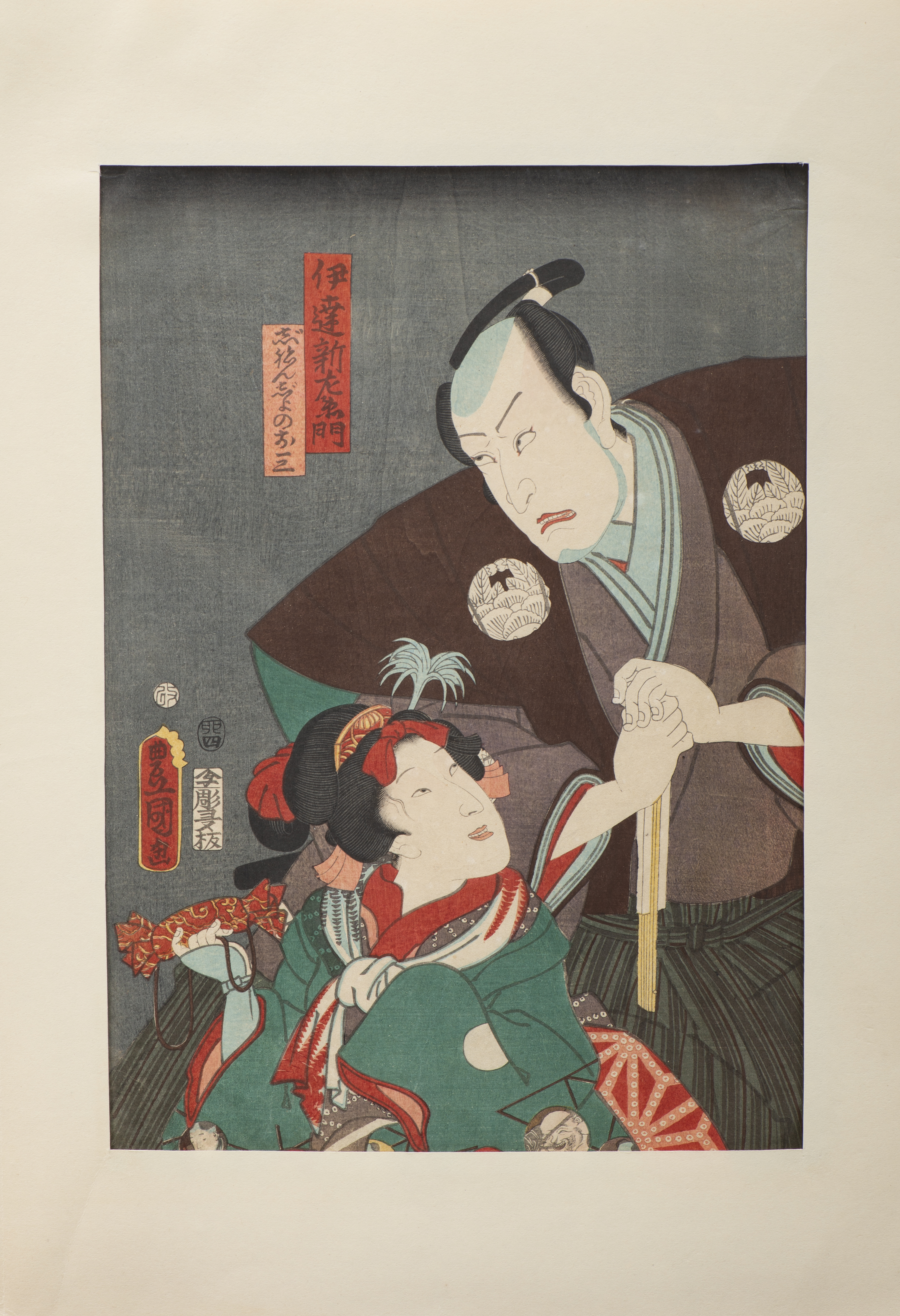 JAPON - Utagawa Kunisada (Toyokuni III) (1786-1864), "Femme portant un sac", Acteurs de théâtre, 1855, du XIXe siècle