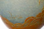Vase 'Palmiers jaunes' circa 1927, Vase en verre épais à panse large et col légèrment évasé décor jaune-orangé stylisé à l'acide sur un fond bleu turquoise. Signé sur la panse au dos"Charder" et "Le Verre Français".