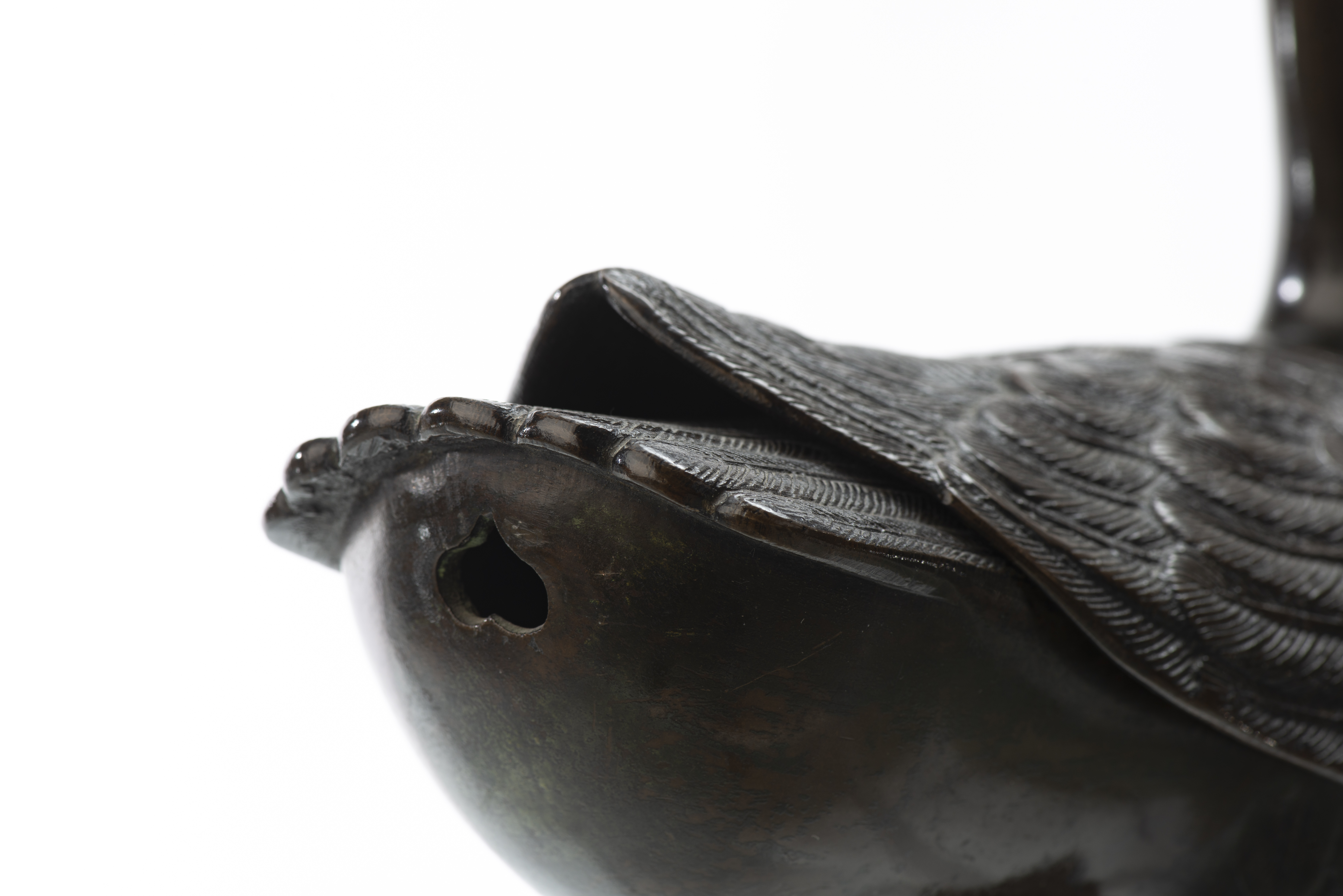 CHINE - Brûle-parfum en bronze zoomorphe figurant une oie.