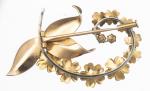 Broche en or jaune formée d'une guirlande de fleurs sertie de pierres précieuses