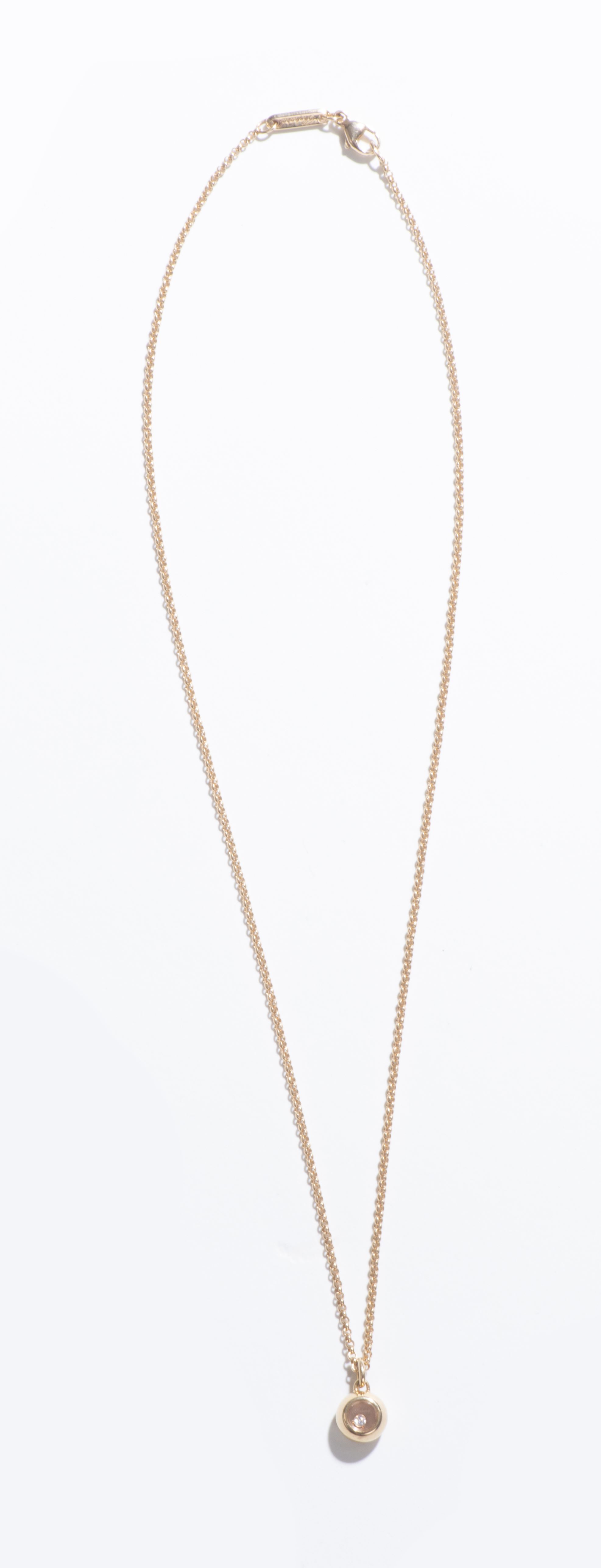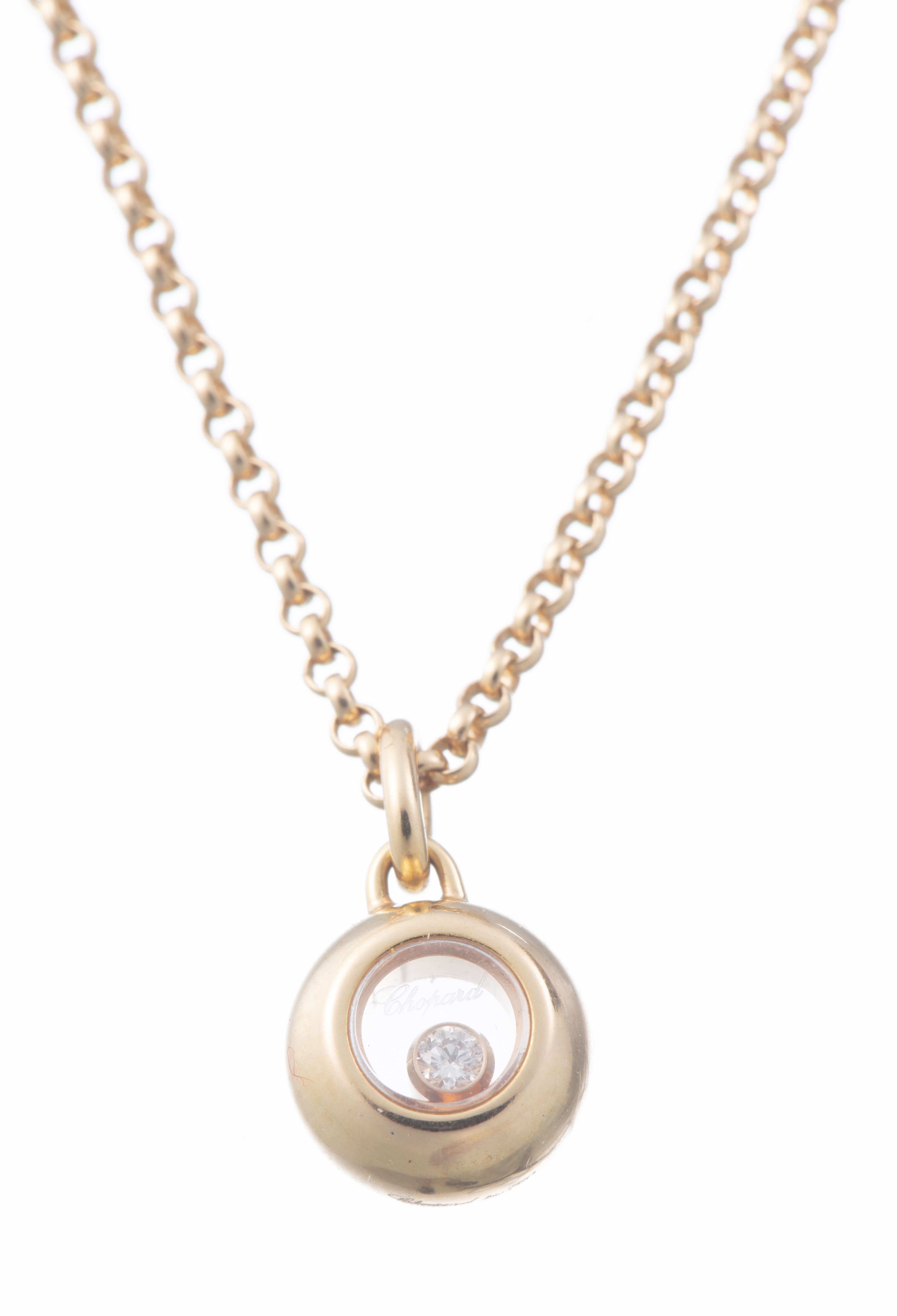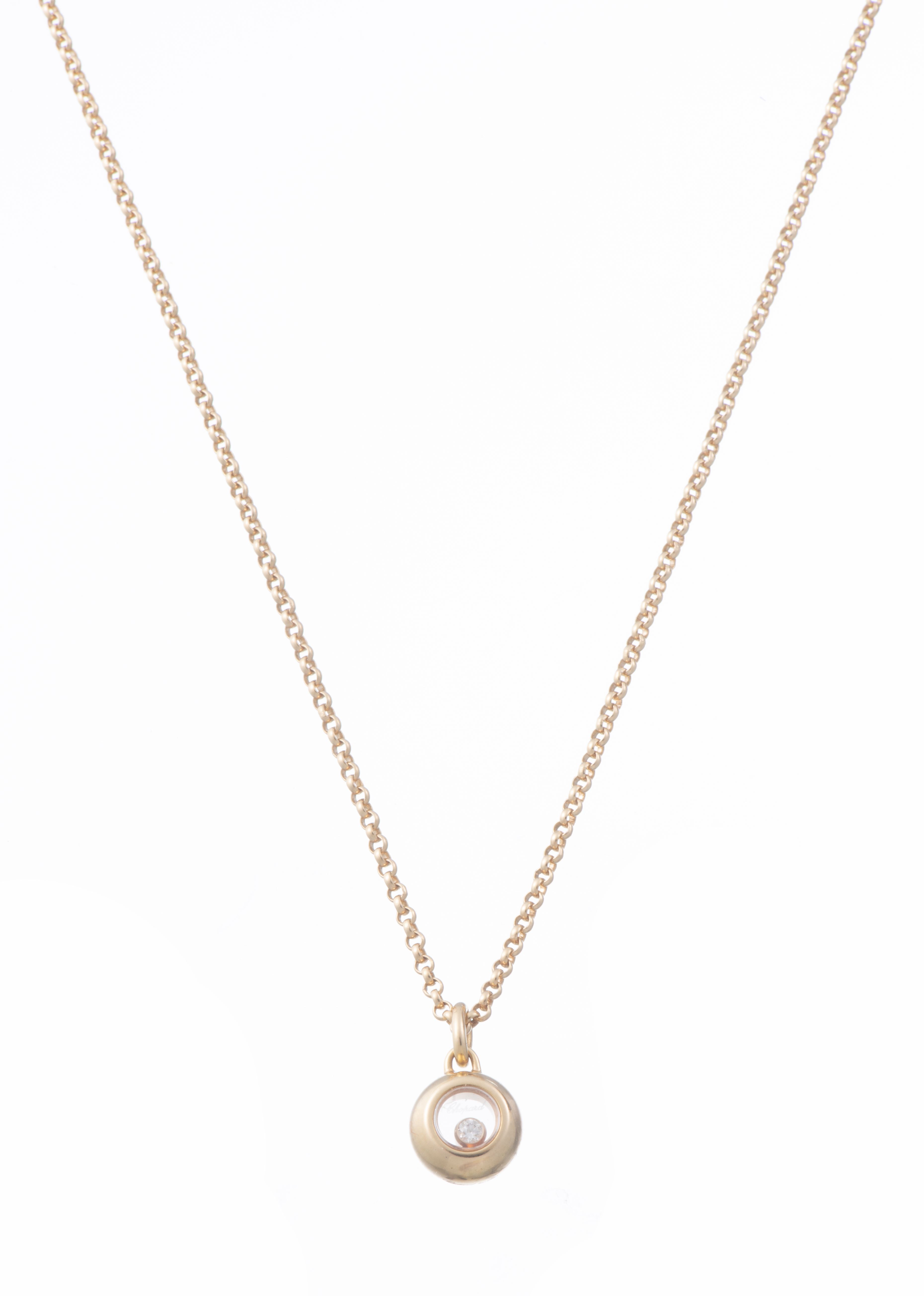 CHOPARD Happy Diamonds Icons, pendentif en or rose .750 en forme de hublot avec un diamant mobile de 0.03 ct et une chaîne jaseron signée Chopard.