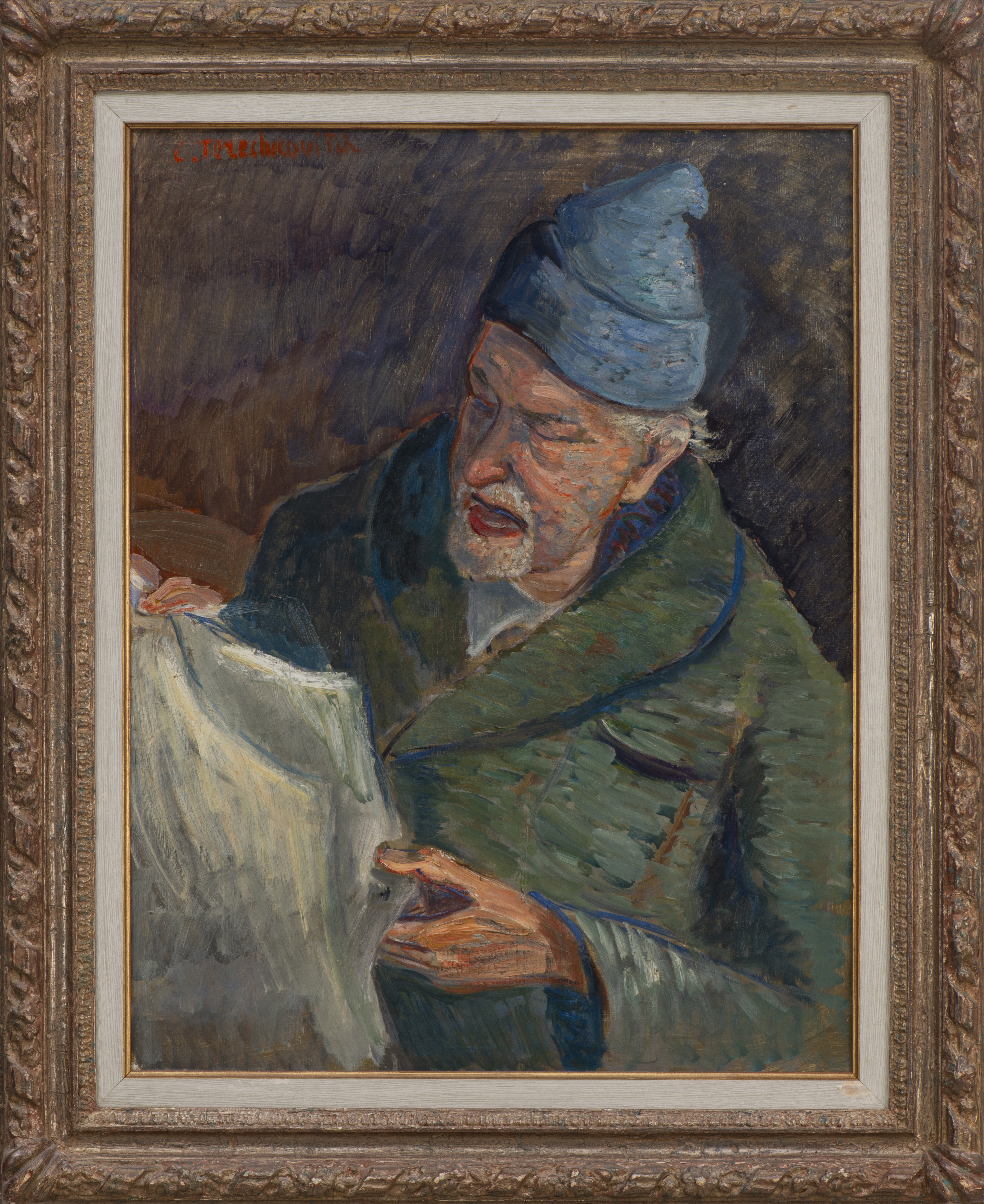 Constantin Andréevitch TERECHKOVITCH (1902-1978), "Vieil homme au journal", huile