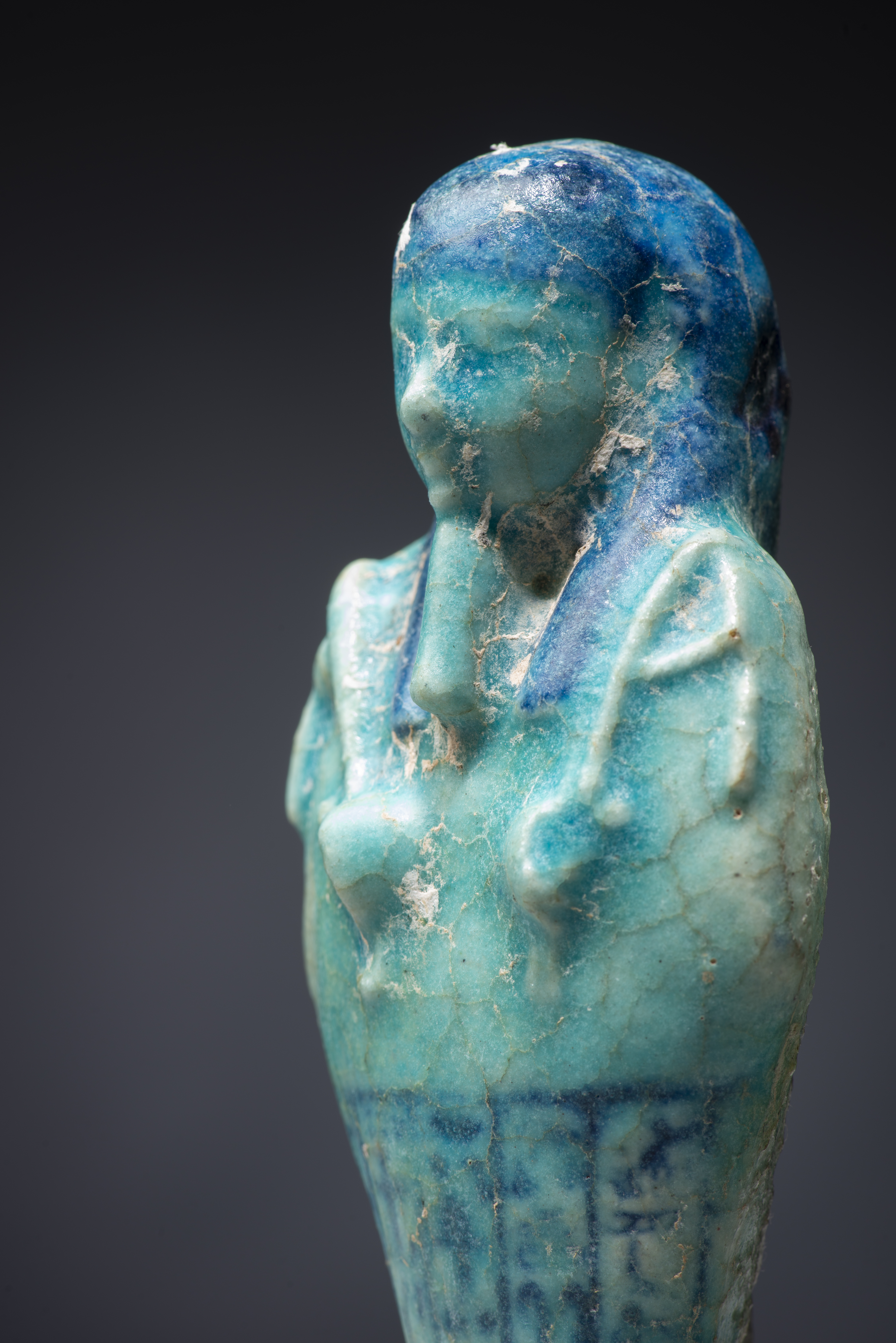 DEUX OUSHEBTIS à glaçure turquoise à deux nuances de bleu. Epoque Ptolémaïque, IVe au IIe siècle av. J.-C.