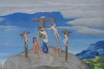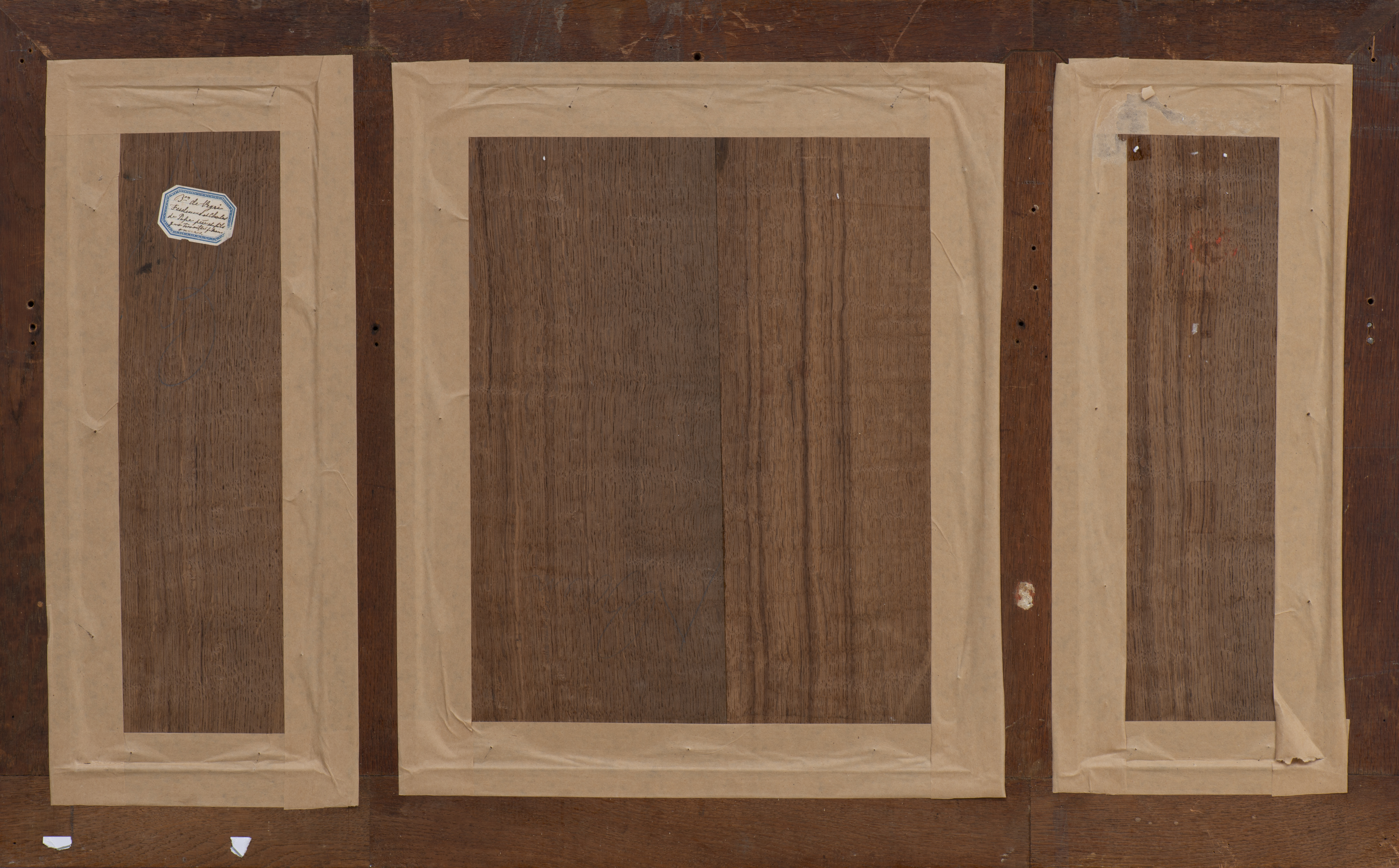 H. 44 x 36 cm (panneau central) et 44 x 15 cm (panneaux latéraux, x2)