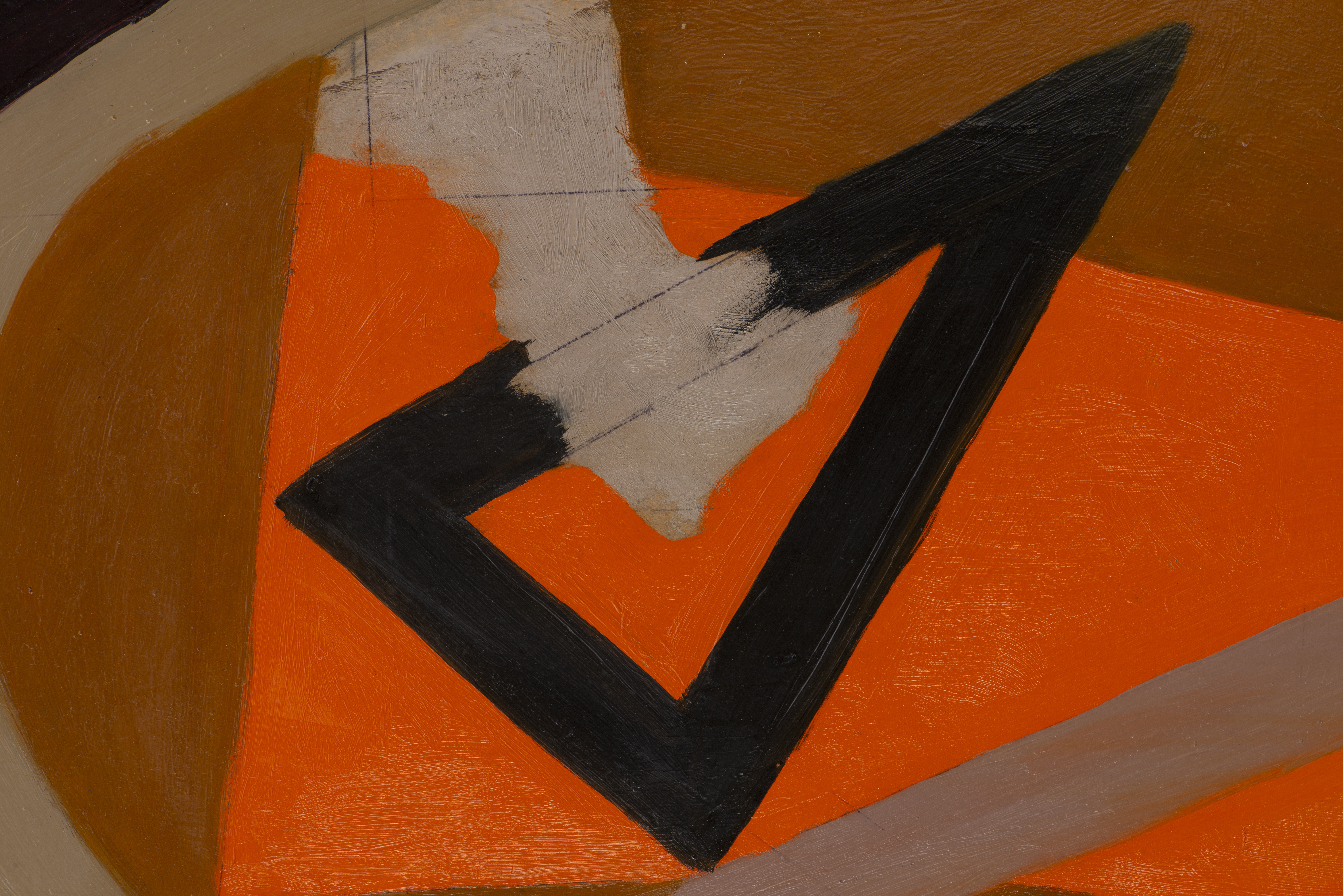 Fernand DUBUIS (1908-1991), "Nature morte à l'équerre", huile sur carton, signé, daté 51, localisé Paris et titré au dos. Porte au dos deux cachets de l'atelier sur le châssis et au verso ainsi qu'une étiquette.