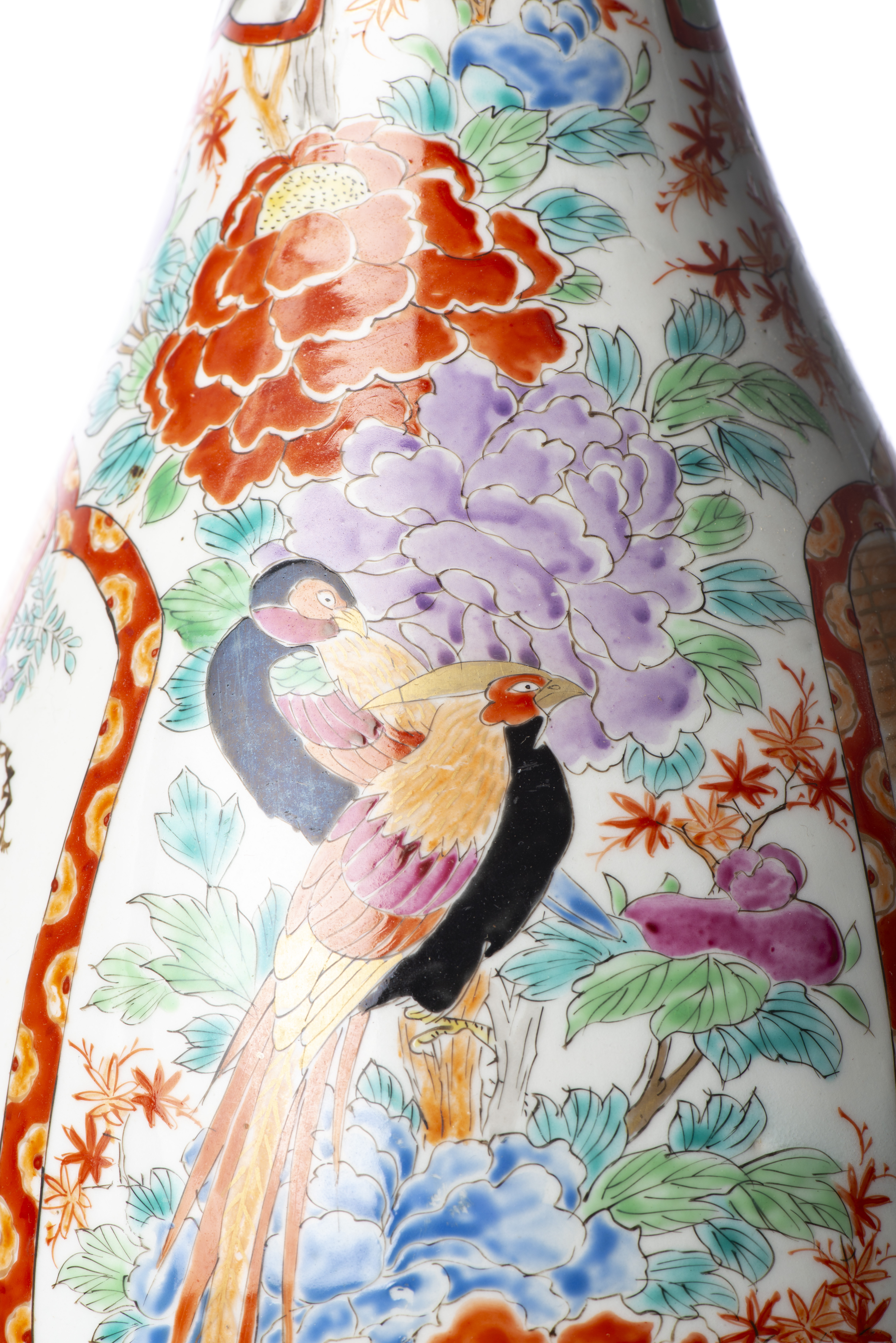 JAPON - Paire de vases Imari en porcelaine, cachet sous la base. Fin XIXe.
