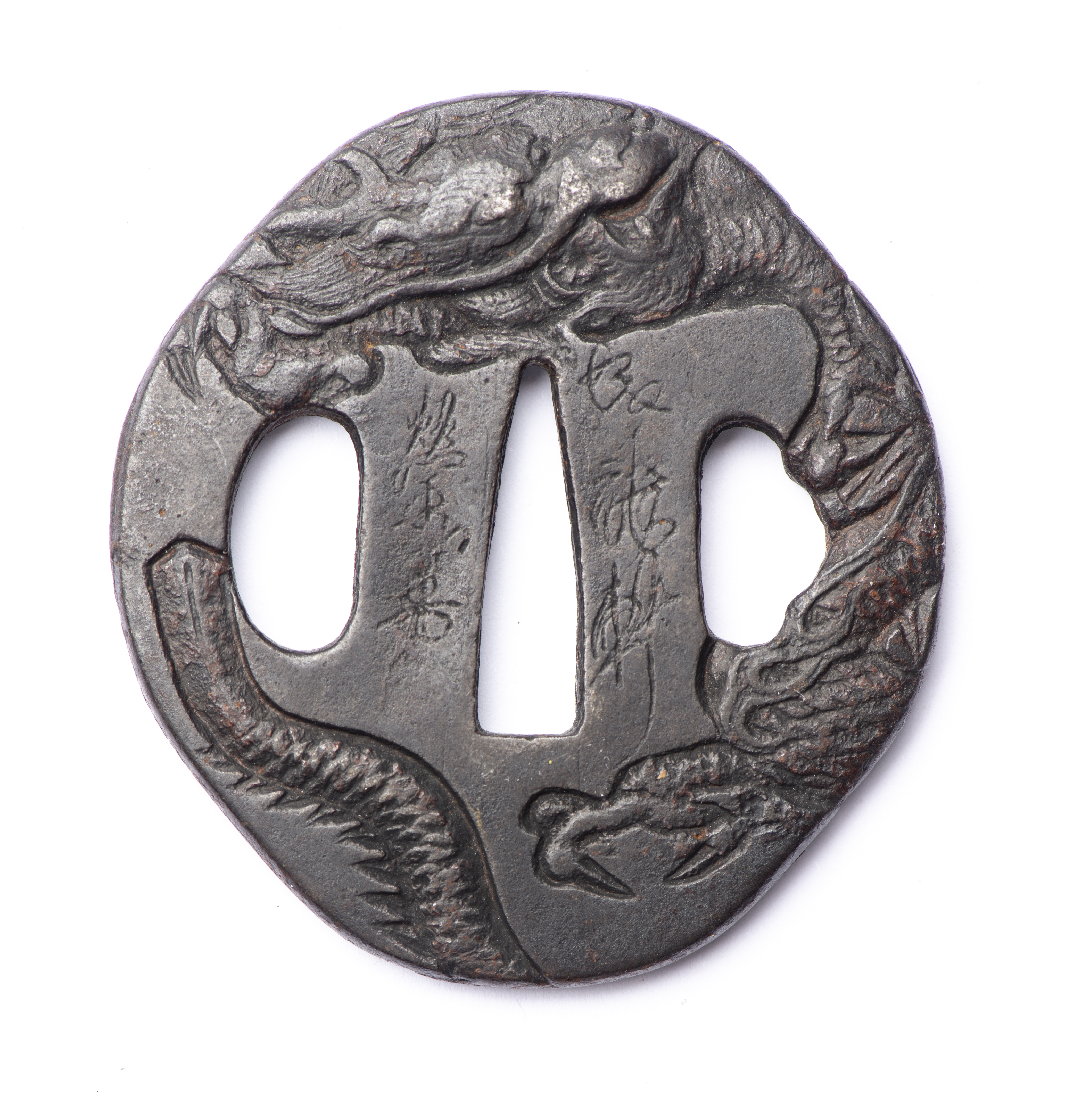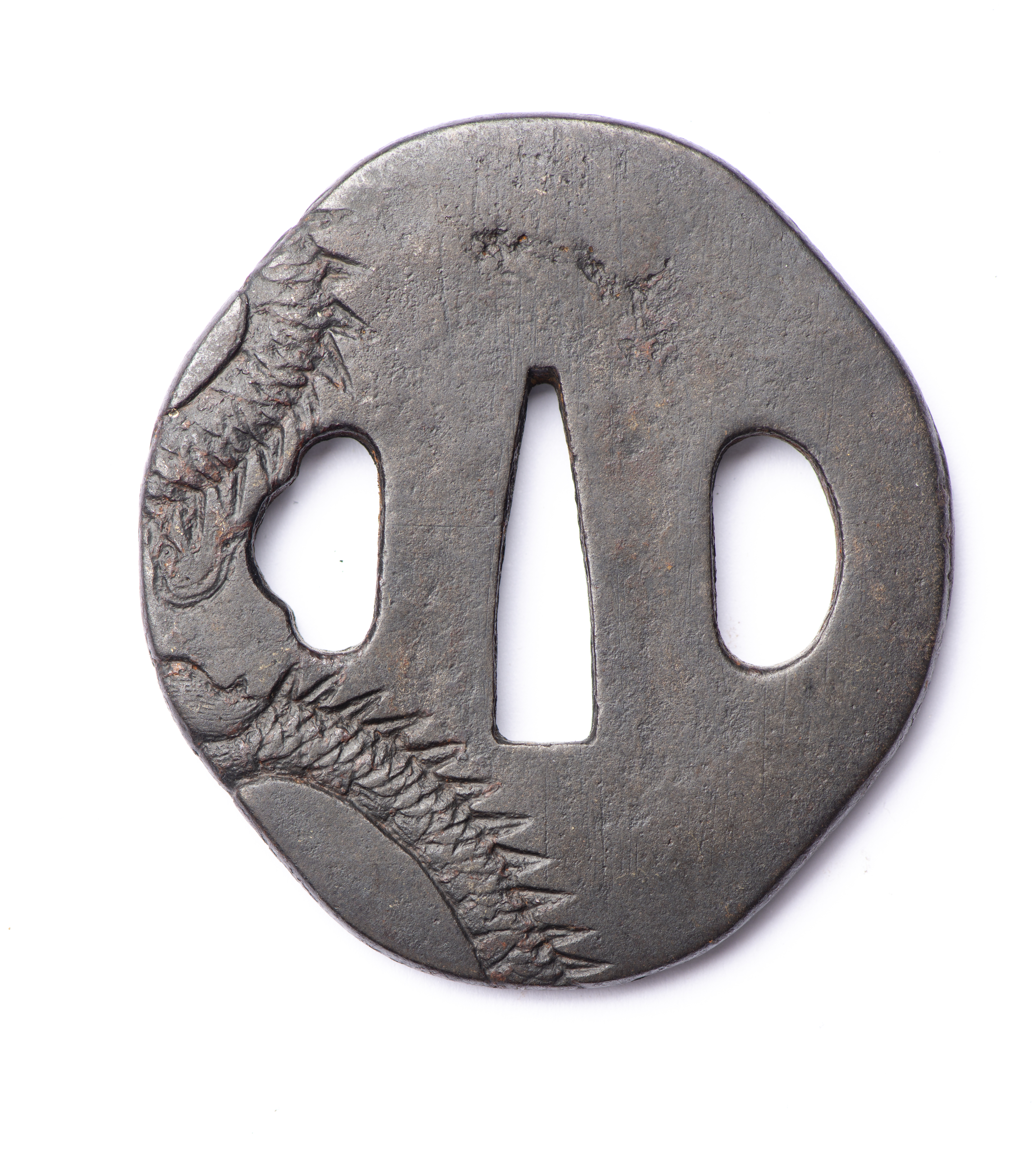 JAPON - Petite Tsuba mokko-gata en fer, Epoque Edo
