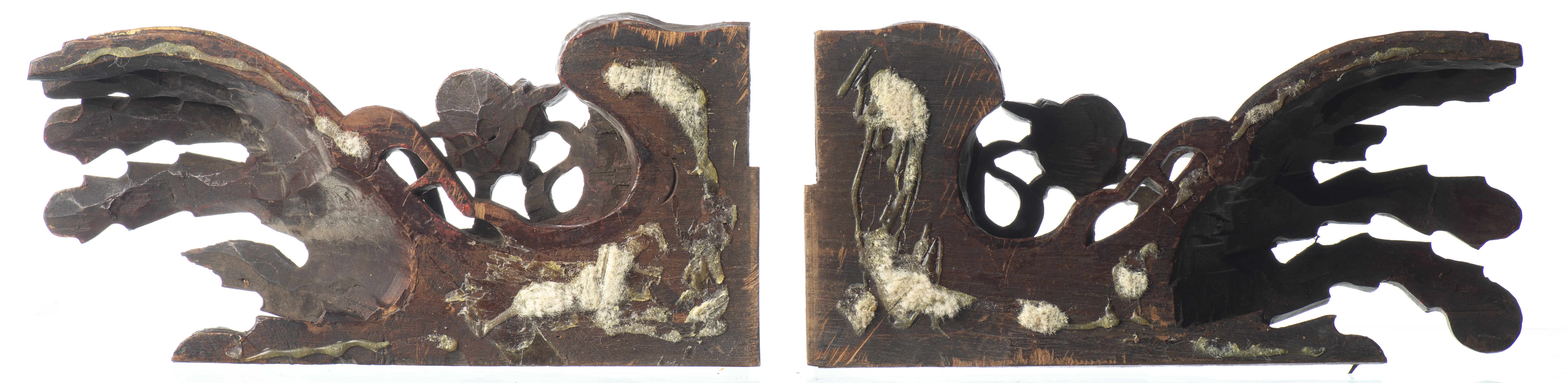TIBET - Deux éléments de boiserie en bois sculpté à patine dorée